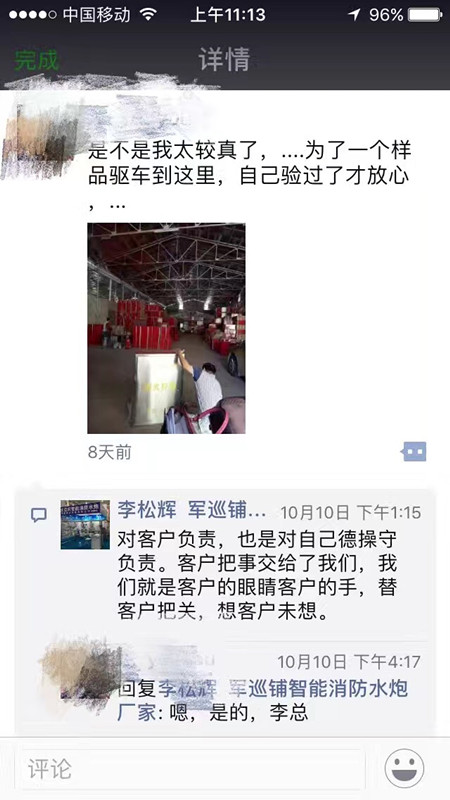 用更專業的態度服務我們的客戶2018年10月,軍巡鋪智能水炮將一臺樣品水炮送到客戶手上,并開箱驗貨。客戶有些不好意思了,一臺樣品水炮, 親自送過來,還指導安裝,走線和試驗。你們廠家能行。 對客戶負責,...