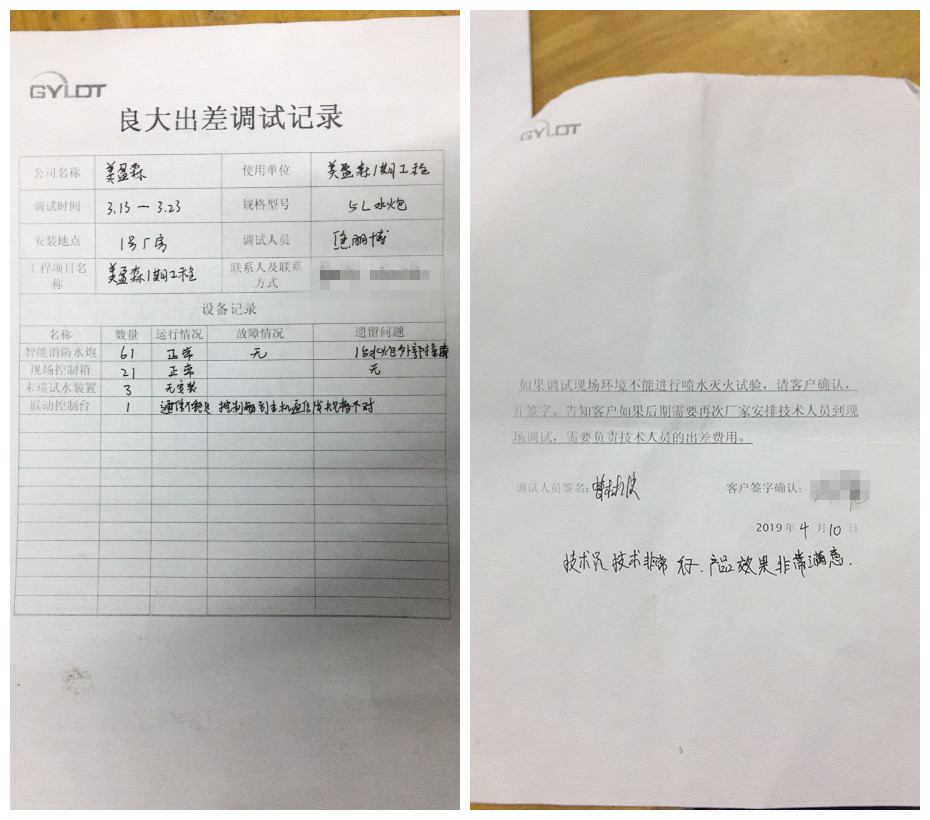 2019年3月,六安市美盈森集團水炮進行調試驗收,軍巡鋪智能水炮技術員在工地呆了十天,滿足客戶對產品安裝,調試需求。 2、2019年3月,山東鄆城圣元環保公司調試3臺30L的智能水炮,...